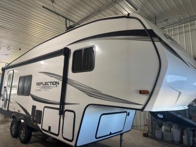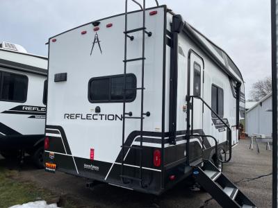 Each Reflection 100 Series fifth wheel by Grand Design is affordable and packed with luxury for unforgettable camping memories! The MorRyde CRE3000 suspension system and Goodyear Endurance tires will provide smooth towing from home to campground. And the solar package with a 180W solar panel, 60 Amp charge controller and 12V refrigerator will allow you to camp for longer periods of time and in more locations! A heated and enclosed underbelly with circulating heat is included in the Arctic 4-Seasons Protection Package, along with a double insulated roof and front cap, and thermofoil insulation under the holding tanks so you can camp all year long if you choose. You will appreciate having an on-demand water heater for hot showers after exploring, and the universal all-in-one docking station will let you monitor your RVs tanks levels and functions with ease. These models also include many luxurious interior features, such as premium Congoleum flooring, pleated shades, residential cabinetry, and matte black fixtures and hardware. Don't let the Reflection 100 Series fifth wheels pass you by!