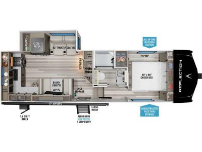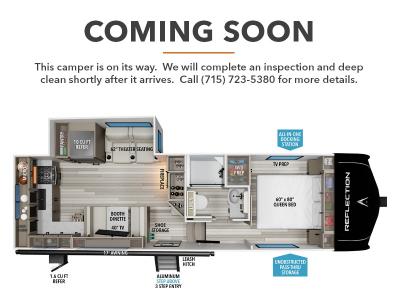 With any Reflection 150 Series fifth wheel by Grand Design, there is more available payload capacity and a broader range of half-ton trucks capable of towing this fifth wheel, and no slider hitch is needed thanks to the 90-degree turning radius which makes them short bed friendly and easier to tow. The mandatory Ultimate Power package provides a "One-Touch" automatic leveling system and a detachable power cord with LED light for easy setup, plus motion sensor pass-through lighting and entry lighting, and the Tire Linc TPMS will help you stay safe on the road. The interior offers residential cabinetry and premium Congoleum flooring, to the booth dinette and residential-style window treatment. Make your refined decision today!