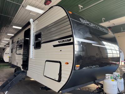 With any Sportsmen Select travel trailer by KZ, you will enjoy premium features at an affordable price, making them perfect for rookie RVers! Each model is constructed with an aerodynamic front profile with a smooth metal front for better fuel efficiency, and the nitrogen filled tires and power tongue jack will make towing easier than ever. There are is also a Key-Alike system for entry and baggage doors to keep your belongings secure, plus backup camera prep and solar roof prep means you can easily add these features to make camping that much smoother. An omnidirectional HDTV antenna with Wi-Fi prep will give you the option to stay connected as you camp, and a multi-media sound bar stereo with Bluetooth, HDMI and USB charge will ensure you'll never go bored on rainy days. The interior of these travel trailers include seamless countertops with a deep undermount stainless steel kitchen sink, a black residential kitchen faucet, wider pocket/passage doors, and residential grade linoleum.
