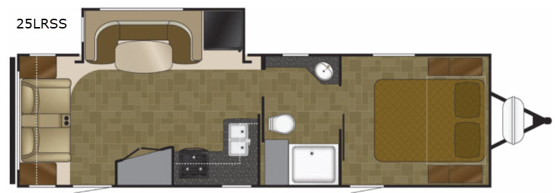 Get ready to make memories after memories with your family when you choose to camp in this single slide out North Trail 25LRSS King travel trailer. With the convenience of two entry doors you can either enter this model and be in the rear living area or you can be in the front bedroom. Within the slide out there is a nice size u-dinette where you can enjoy your meals and at night the dinette converts into additional sleeping space. The walk-through bathroom has sliding doors along either side for complete privacy, plus here you will find all of the amenities needed to get ready for the day such as a shower, toilet, sink, and large vanity!
